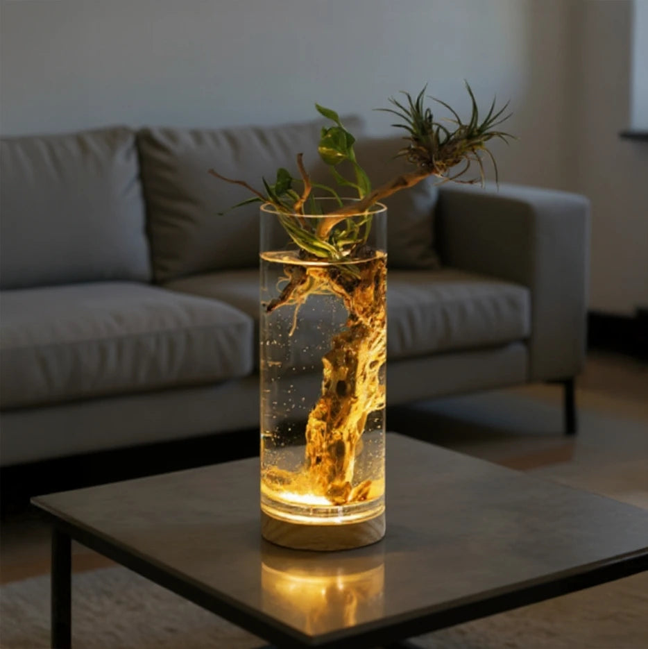 Our ingenious, self-sustaining system ensures your resilient plant thrives by perpetually purifying its own water. Simply top up occasionally, and watch your vibrant, low-light botanical masterpiece flourish with roots that naturally clean the water, creating a stunning, ever-fresh visual spectacle.